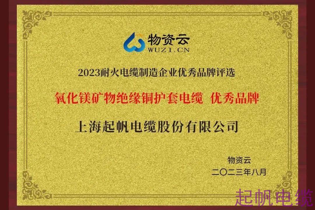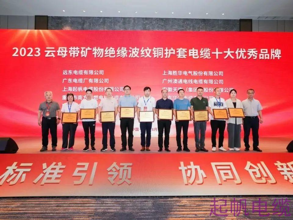 起帆电缆荣膺“2023氧化镁矿物绝缘铜护套电缆十大优秀品牌”、“2023云母带矿物绝缘波纹铜护套电缆十大优秀品牌”。