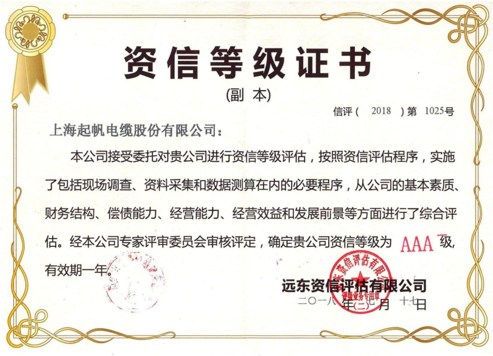 此文关键字:上海起帆 资信等级 AAA